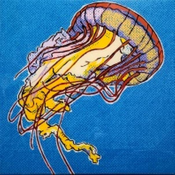 Acrylic paint on cradled wood panel with resin finish